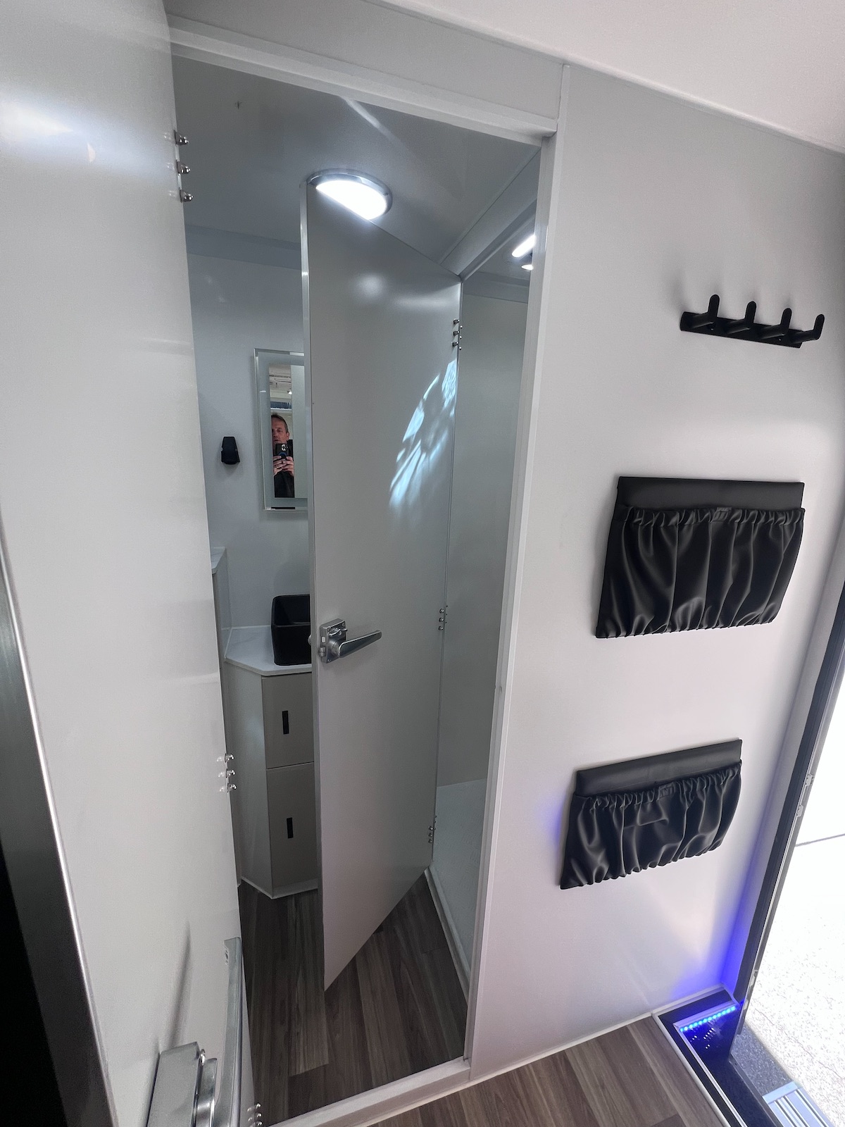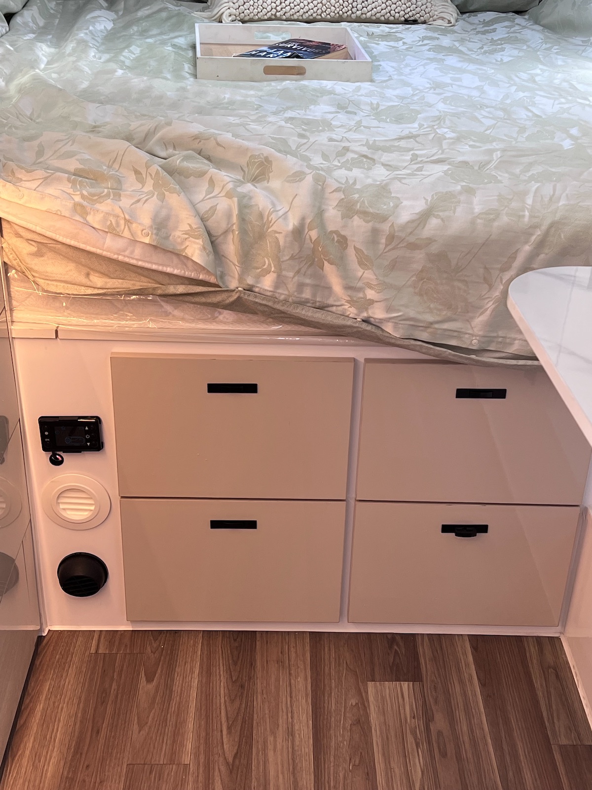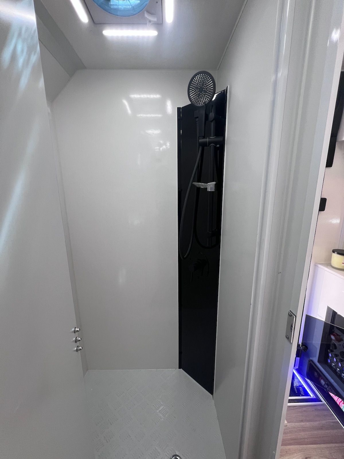 Step inside and discover a thoughtfully designed interior built for two. A spacious ensuite includes a Thetford toilet, shower, and hot water system, while the pocket-spring queen mattress with memory foam topper ensures restful nights.